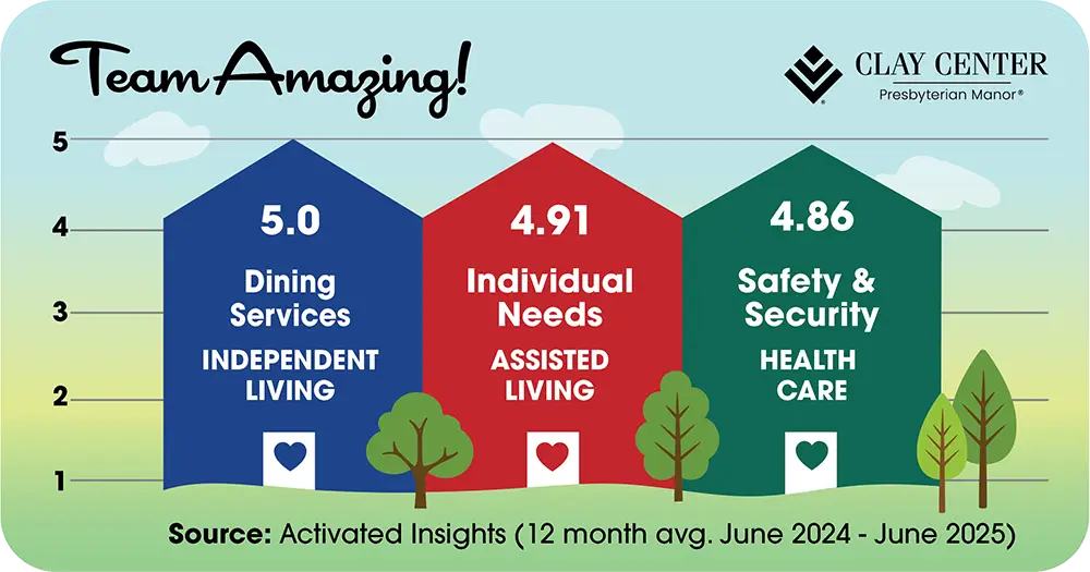 Our PMMA (Presbyterian Manors of Mid-America®) communities continue to receive high scores in monthly surveys with residents and their families.