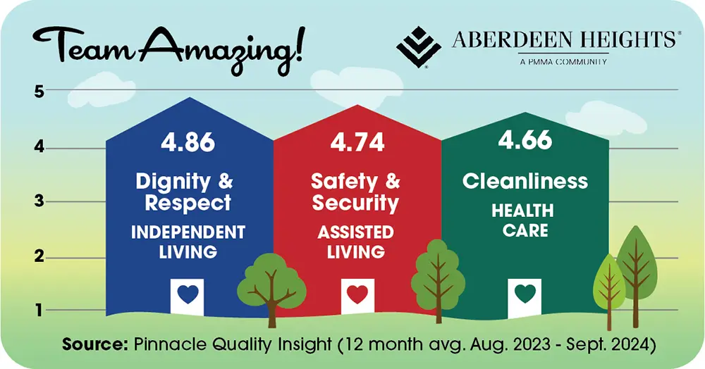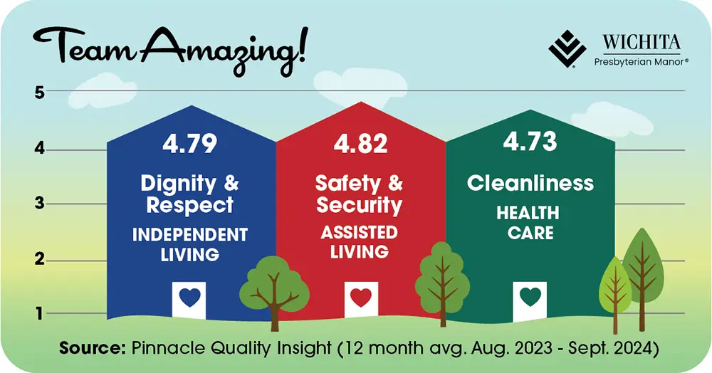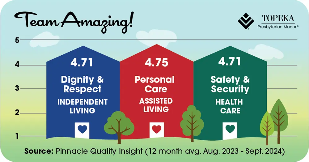Congratulations to all PMMA (Presbyterian Manors of Mid-America®) communities for continuing to receive high scores in monthly surveys.